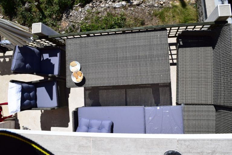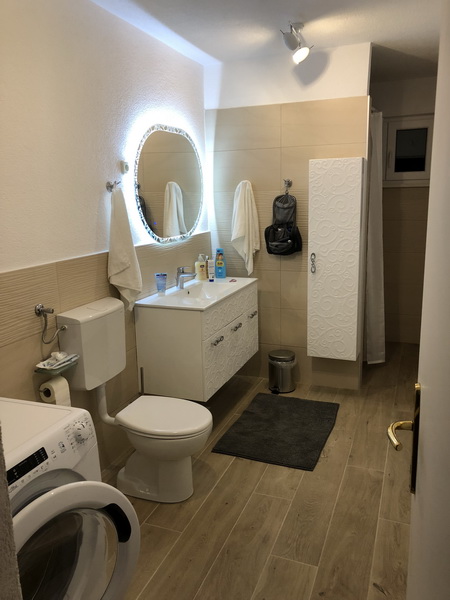 Apartment Jara, approx. 129 m2 is located in the ground floor of the house. It offers 3 bedrooms (all with double (king-size) beds / one bedroom is equipped with a very luxury divan king-size bed), the living room has a large flatscreen SAT-TV incl. DVD- Player and a Sony PlayStation. The sofa located in the living room offers an additional bed for up to two children under 12 years or one adult. The apartment has two bathrooms. One is equipped with a washing machine and a very comfortable walk-in shower. The open kitchen is fully equipped and includes a microwave and a dishwashing machine. The terrace has a big awning and offers a very comfortable outside lounge and dining area with a magic view to the sea.